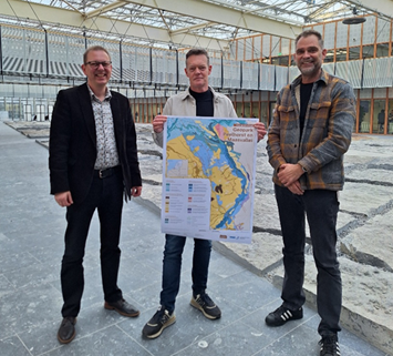 Foto: In het midden Johan ten Veen (Geologische Dienst Nederland TNO), rechts Godert Verbeek en links Roger Saanen (beide projectleider bij het Geopark Peelhorst en Maasvallei)