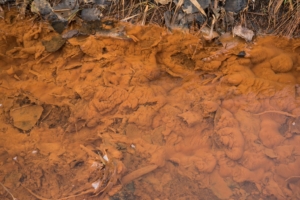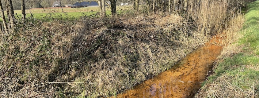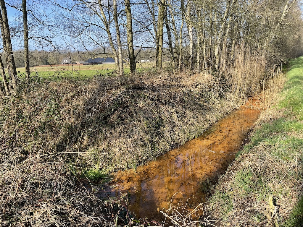 Bijvoorbeeld aan de sloot langs het fietspad met het roestbruine water. Het water komt hier uit de bodem omhoog en bevat ijzer. Hoe is dat te verklaren?